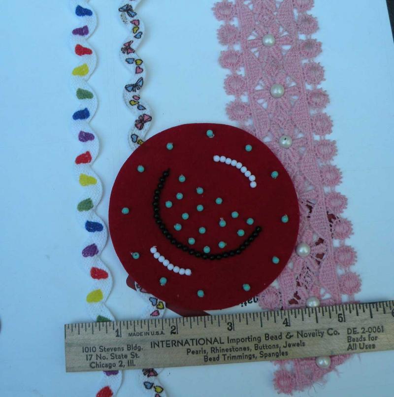 Nostalgia Set. 2 yards of each ribbon, plus a very old sew on beaded patch. If you missed the 60's or you miss the 60's. $6 plus shipping. email to order