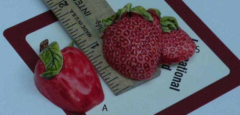 Plastic Apple or Strawberry for Gluing. 1 inch big. Very dimensional. 1 pair of either style is $2. Email to order