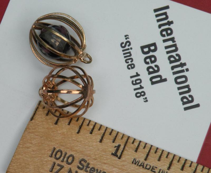 Pure 60’s Bird Cage Drops. We bought quite a few from the E. A. Adams Company in 1966. These are what is left. Brass with a gold plate. 15mm around Insert a bead inside by bending the metal cage, in 1967 this was an earring fad. 12 pieces for $3 plus shipping.