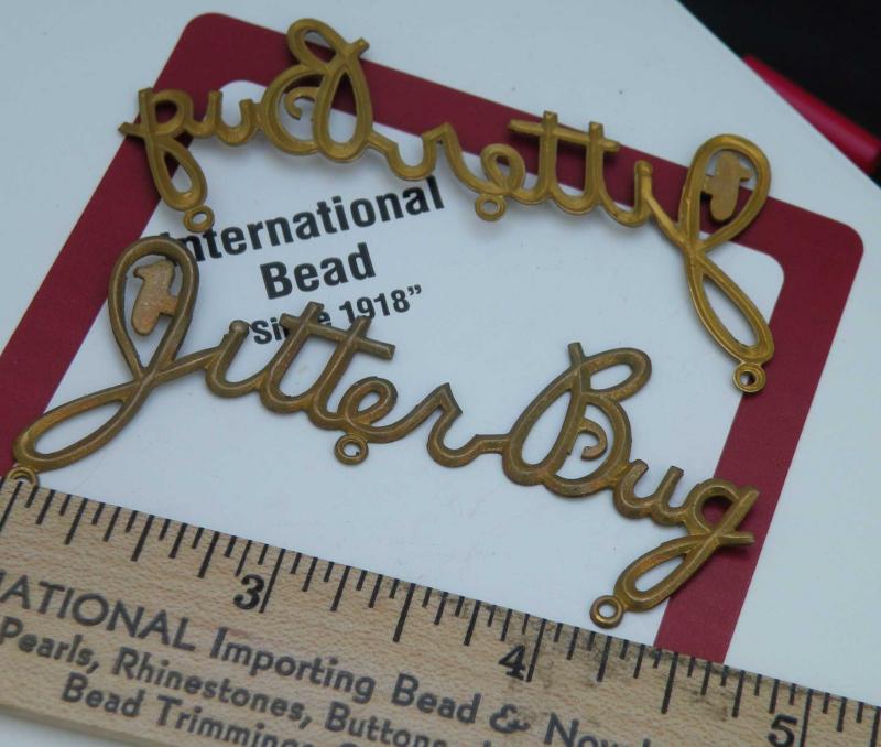 Fifties Raw Brass, Jitterbug. Measures 2 ¾ inches long and the J is 1 ¼ inches high. Thin brass bends easily. $1 each plus shipping. Rare, Limited.