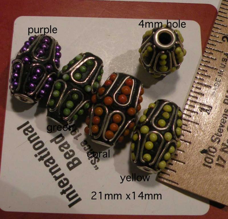 21mm Lac Beads from India. A metal frame is coated with lacquer and then decorated with beads. 21 mm long 14mm wide large 4mm hole