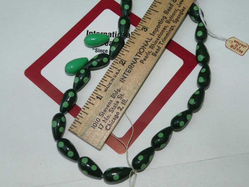 Old Japanese Plastic drop shape beads with a thick enamel coating, spotted or plain. 15mm x 9mm 25 beads of a color for $3. ask for plain or spotted-----------------------------------