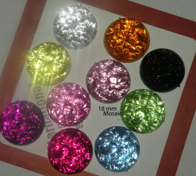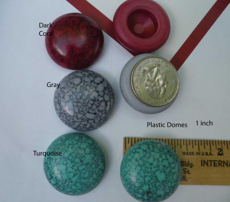 Flat Backed Plastic Domes there is a cut out circle on the back. 1 inch, (25mm) $3 per dozen of a color